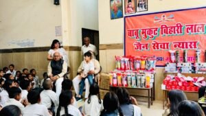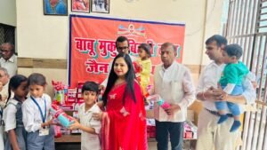 मुरादाबाद। बाबू मुकुट बिहारी लाल जैन सेवा न्यास के अध्यक्ष डॉ. पवन कुमार जैन ने अपने पौत्र इवान जैन का जन्मदिवस सेवा भारती द्वारा संचालित बाल विकास विद्यालय, पैरा की मिलक में अभावग्रस्त वर्ग के बच्चों के बीच सादगी एवं सेवा भाव के साथ मनाया। विद्यालय पहुँचने पर भारतीय संस्कृति एवं संस्कारों से संचालित इस संस्थान के नन्हे भैया-बहनों तथा शिक्षकों ने इवान को भारतीय पद्धति से शुभकामनाएँ प्रदान कीं। इस अवसर पर इवान के माता-पिता नमन जैन एवं प्रिया जैन ने सभी बच्चों को उपहार एवं मिष्ठान वितरित किया।