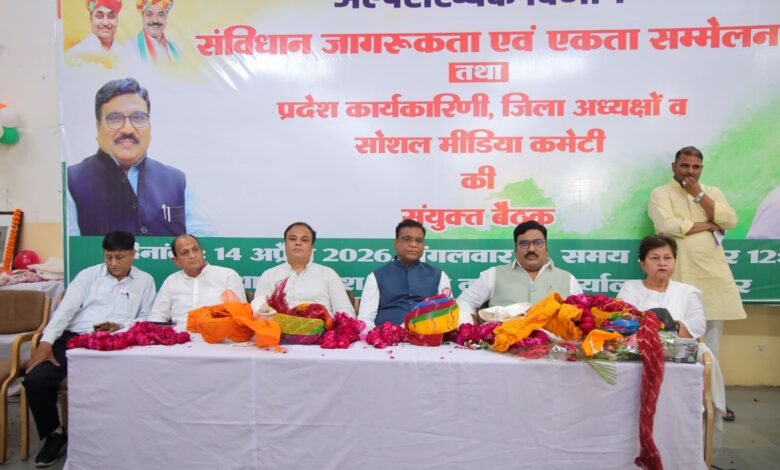 जयपुर। भारत रत्न डॉ. भीमराव अंबेडकर जयंती के अवसर पर जयपुर स्थित पीसीसी कार्यालय में राजस्थान प्रदेश कांग्रेस कमेटी (अल्पसंख्यक विभाग) द्वारा “संविधान जागरूकता एवं एकता सम्मेलन” का भव्य आयोजन किया गया। कार्यक्रम में प्रदेशभर से आए कार्यकर्ताओं, पदाधिकारियों एवं कांग्रेसजनों की गरिमामयी उपस्थिति रही, जिससे पूरे आयोजन में उत्साह और ऊर्जा का माहौल देखने को मिला।